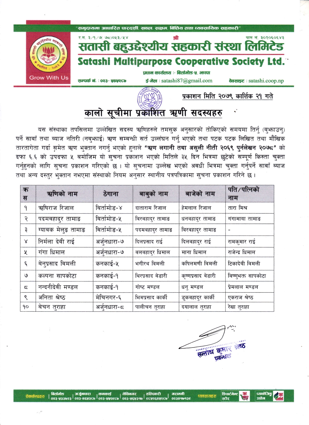 कालो सुचीमा प्रकासित ऋणी सदस्यहरु